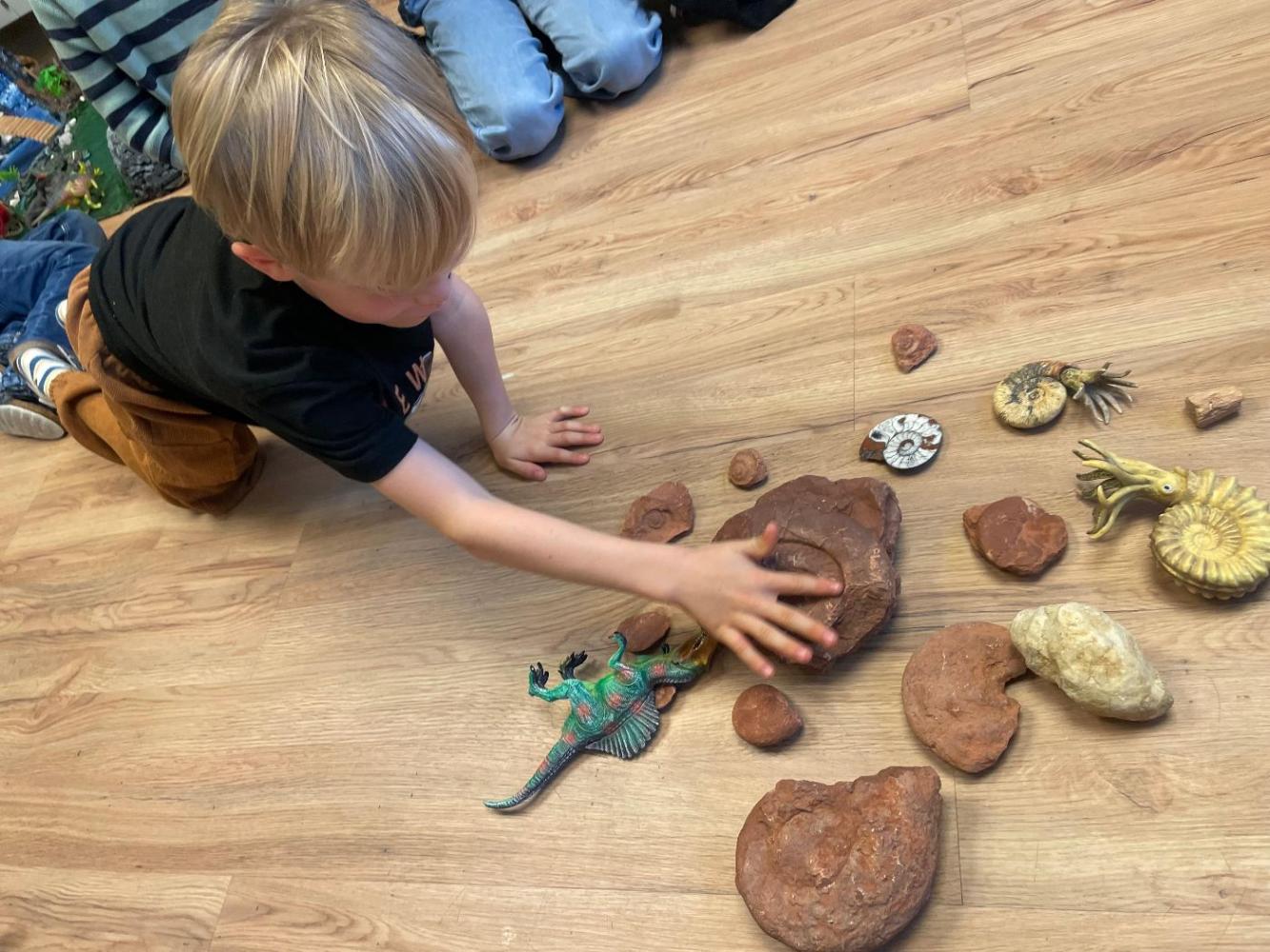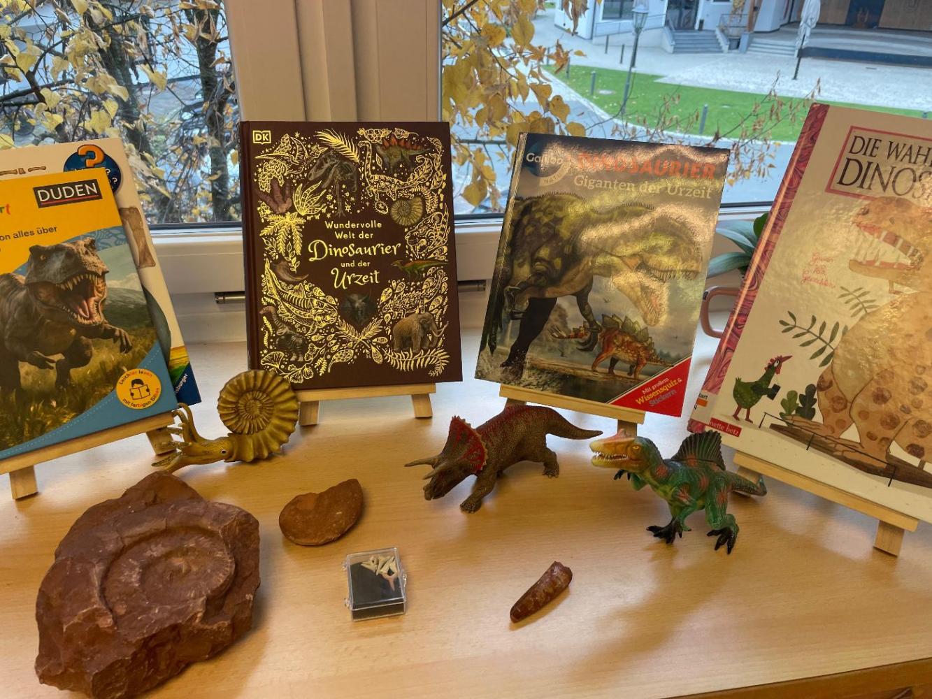 In der Klasse entstand eine eigene Dinolandschaft mit Fossilien, Büchern und Dinofiguren.