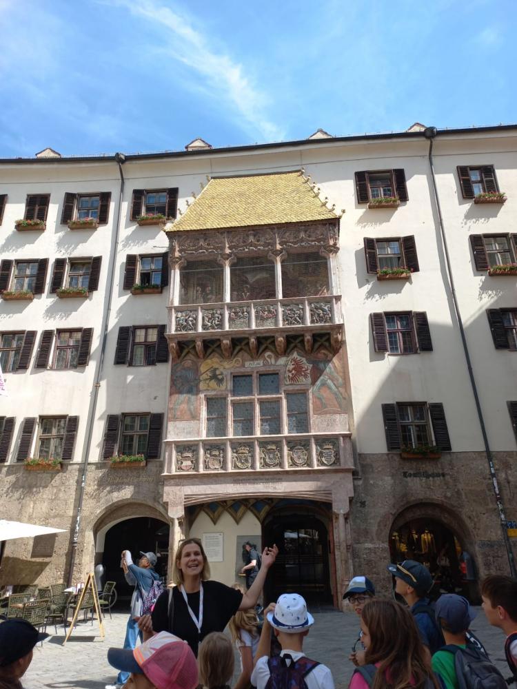 Früh am Morgen ging es mit dem Bus los in die Tiroler Landeshauptstadt. Dort erwartete die Schülerinnen und Schüler eine spannende Altstadtführung mit einer Reiseleiterin, bei der sie viel über die Geschichte und Sehenswürdigkeiten Innsbrucks erfuhren.
