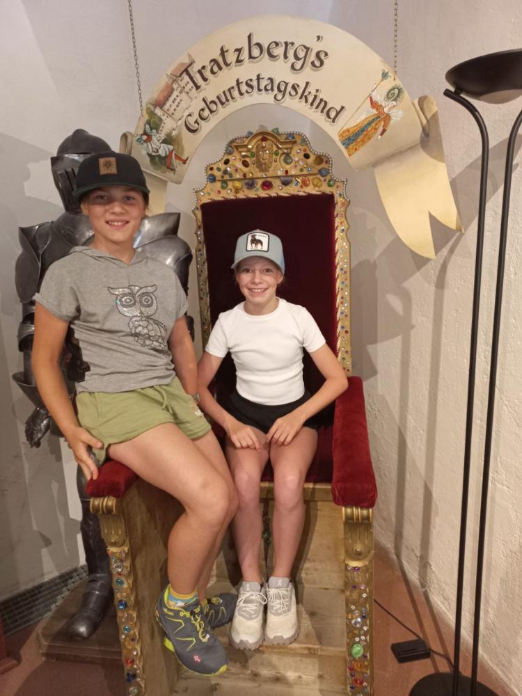 Nach einer gemütlichen Pause im Hofgarten ging es weiter zum Schloss Tratzberg. Dort tauchten die Kinder mithilfe eines Audioguides in frühere Zeiten ein. Im Anschluss blieb noch Zeit zum Spielen auf dem nahegelegenen Spielplatz – und natürlich durfte ein leckeres Eis zum Abschluss nicht fehlen!