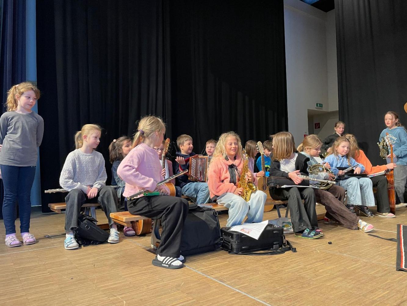 Zu hören und zu sehen waren viele verschiedene Instrumente, die von den Kindern mit viel Freude und Engagement präsentiert wurden. Die jungen Musikerinnen und Musiker musizierten gemeinsam und sorgten für eine sehr schöne, abwechslungsreiche Darbietung.