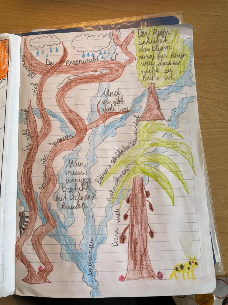 In mehreren Klassen wurde der Film anschließend nachbesprochen. Dabei griffen die Kinder verschiedene Themen aus dem Film auf, wie den Regenwald, den Papagei sowie Lama und Alpaka. So konnten spielerisch Wissen erweitert und neue Inhalte vertieft werden.